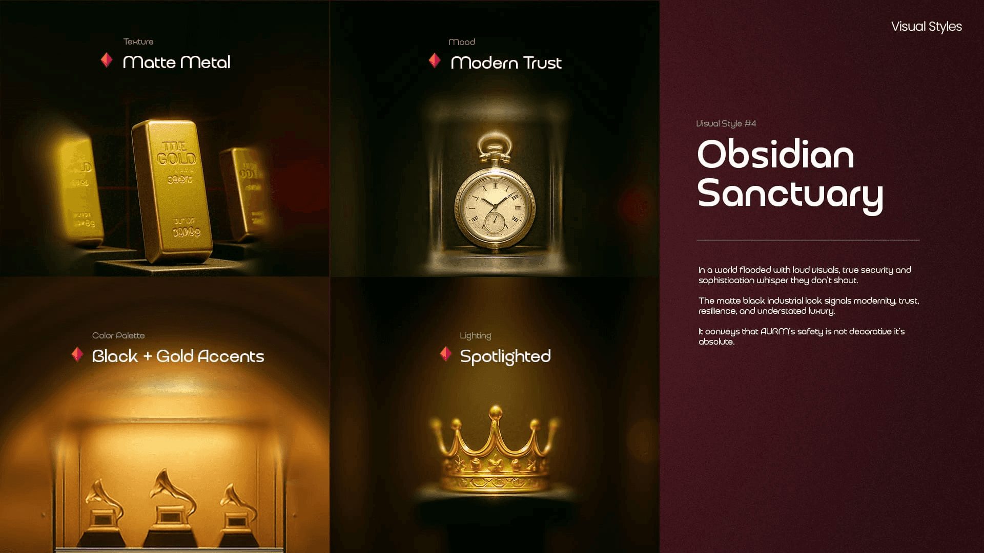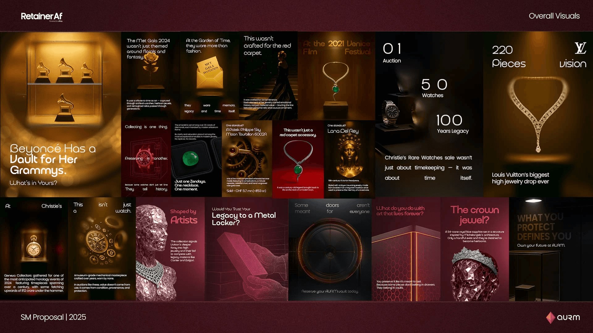 This project focused on building a visual identity system that could function across social content, digital platforms, and branded communication, all while maintaining a consistent tone rooted in scarcity, cultural relevance, and protection. Every design decision from grid structure to color depth was made to position Aurm as a brand of legacy, not just luxury.