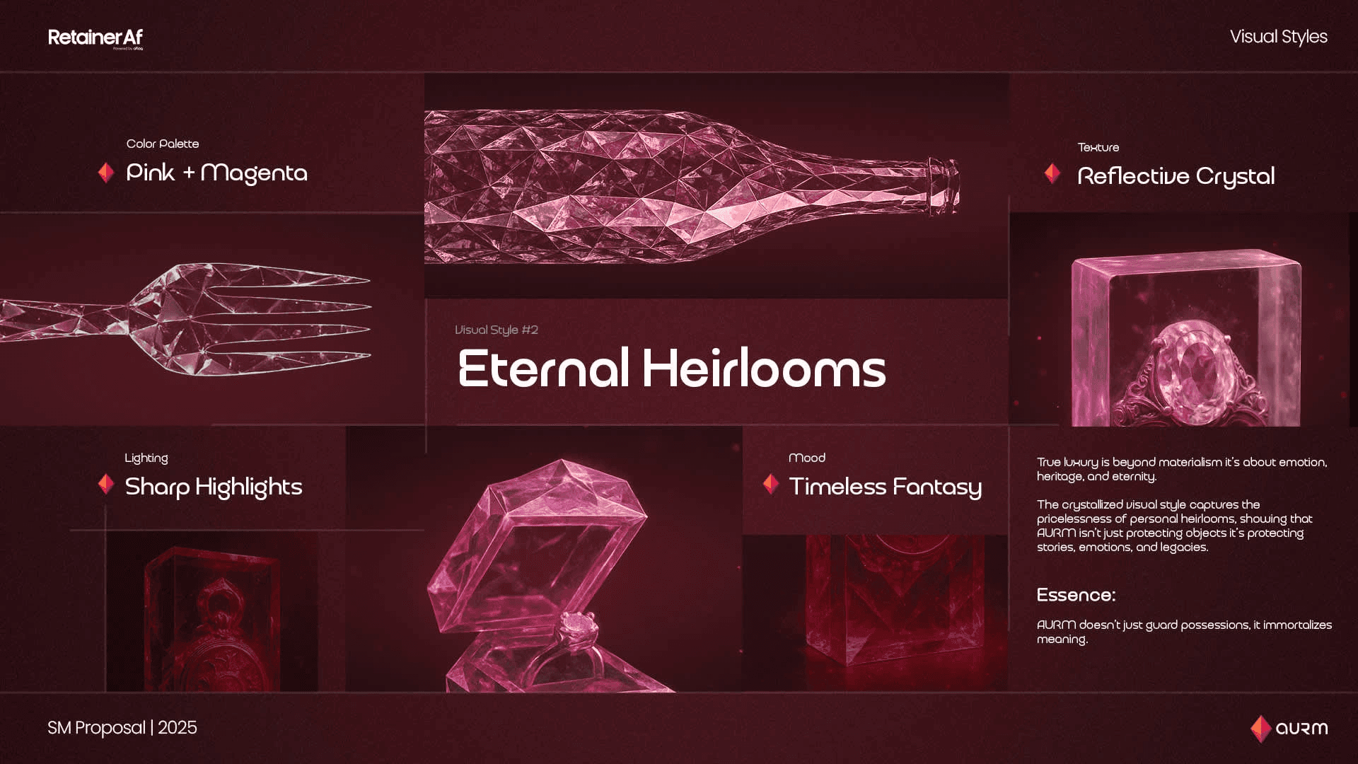 The visual direction for Aurm was built around the concept of “preserved rarity.” Every asset was treated like an object behind glass—framed, spotlighted, and untouchable.