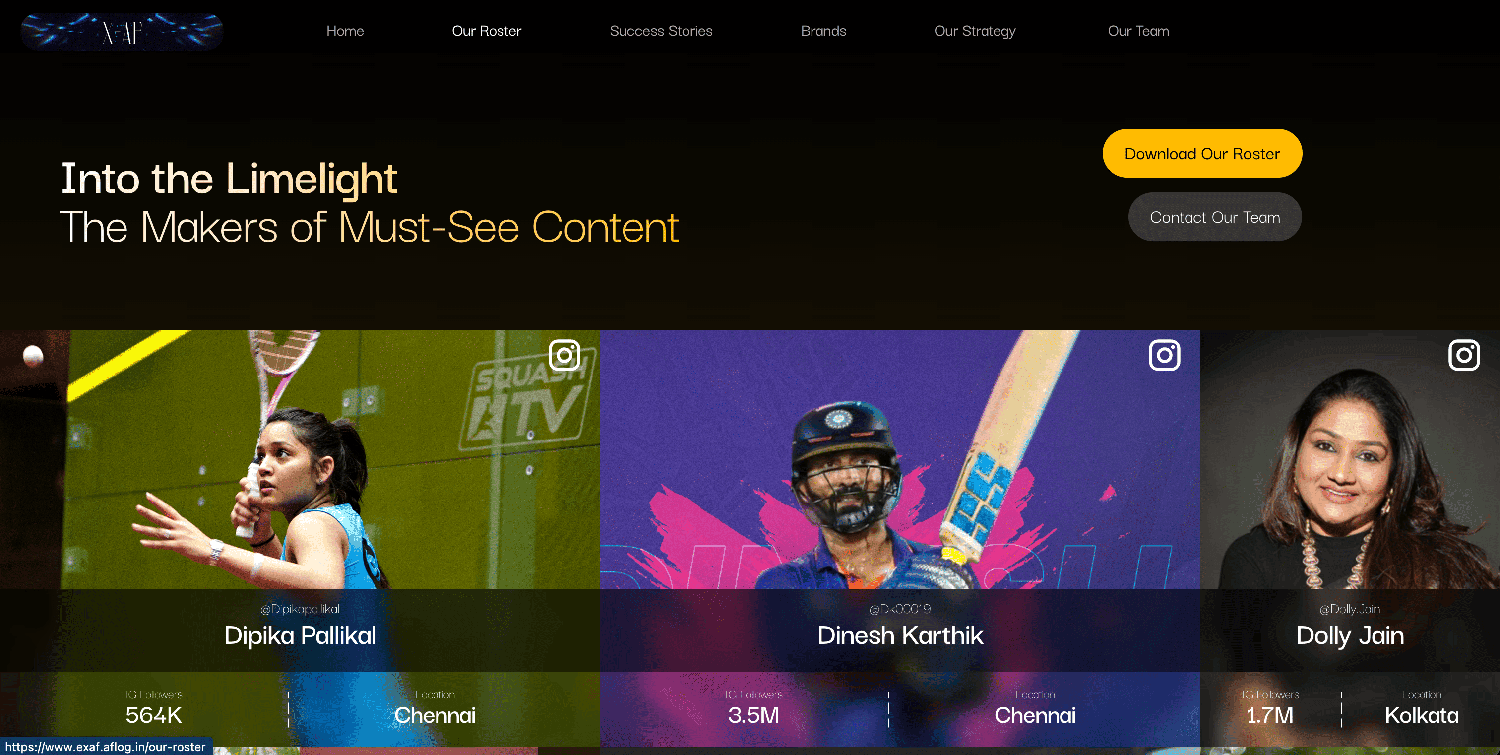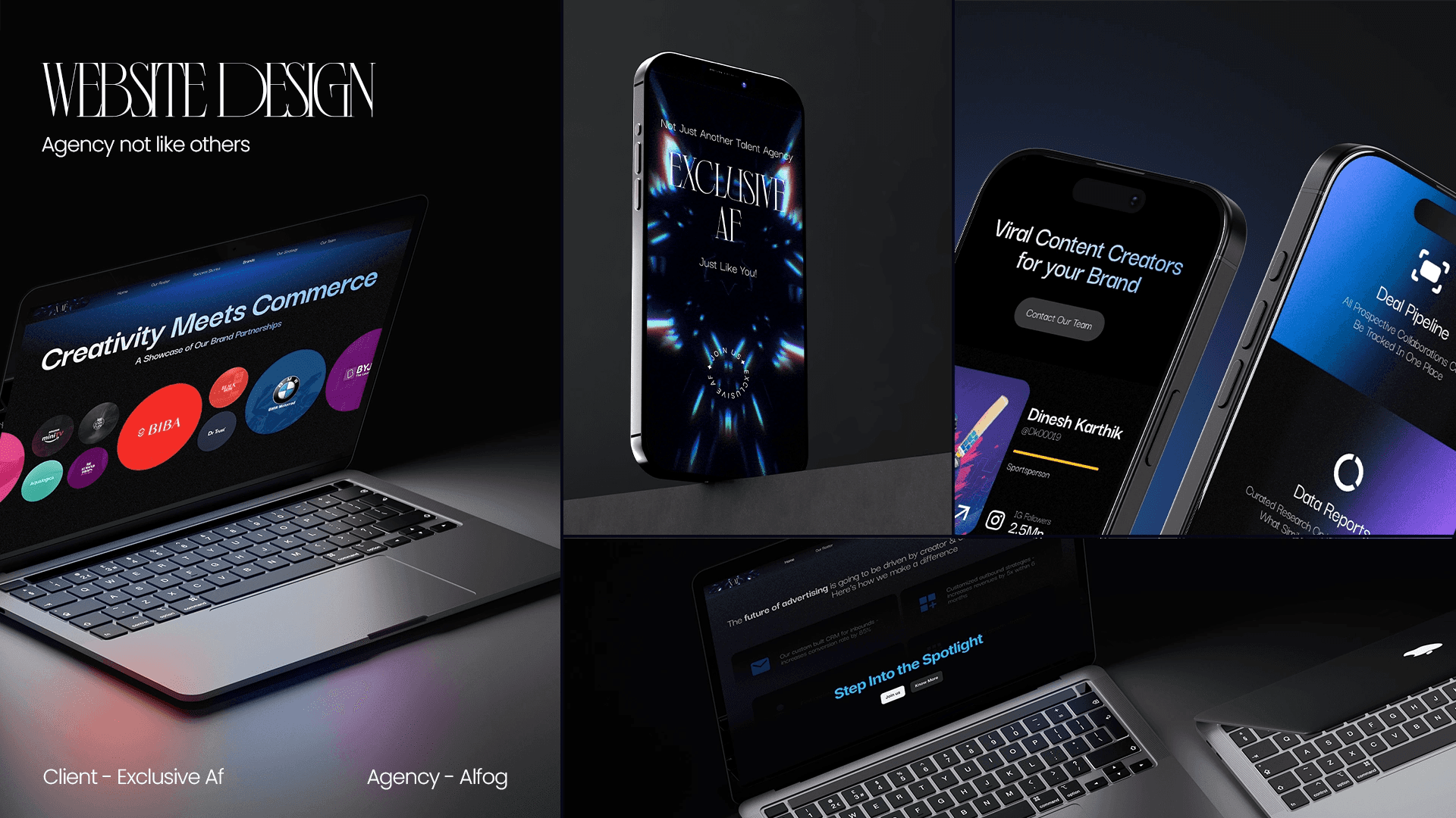 Exclusive AF (EX-AF) is a talent management agency representing top creators across India. The brief was clear: build a digital and visual identity that feels invite-only an exclusive club where creators don’t just sign up, they belong.