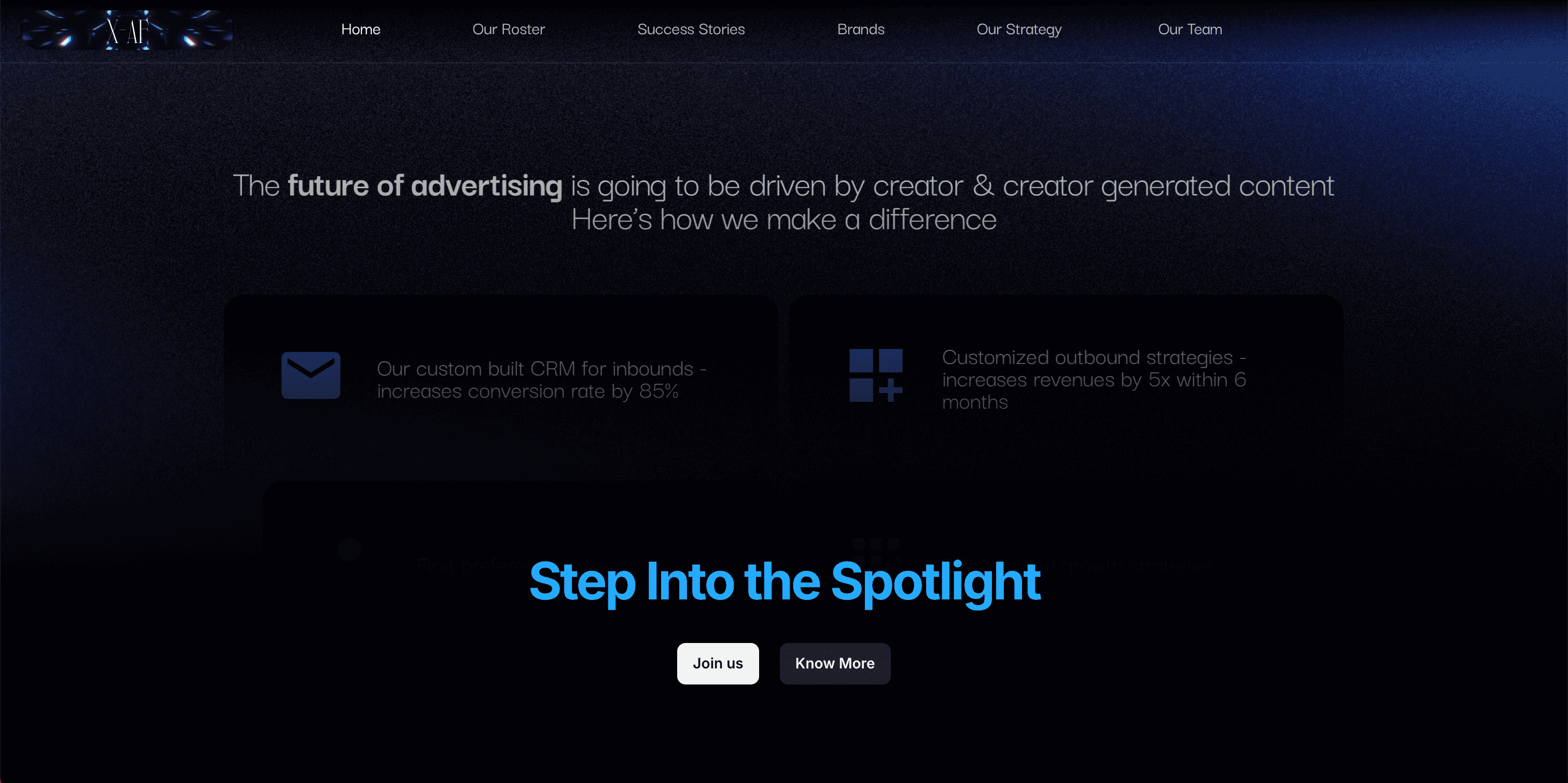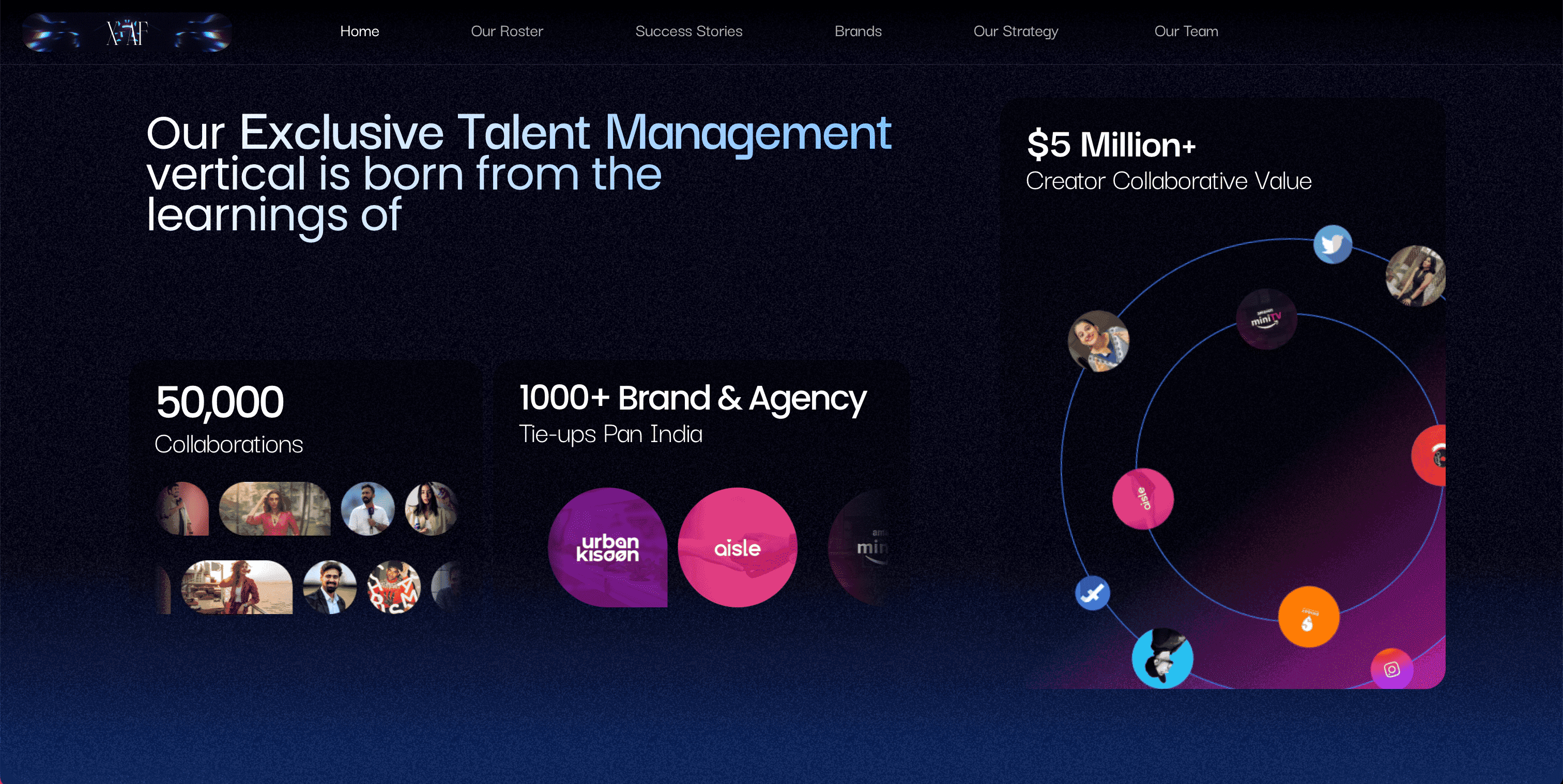 Built modules like rosters, metrics, and success stories that looked more like a Vogue editorial than a startup page.