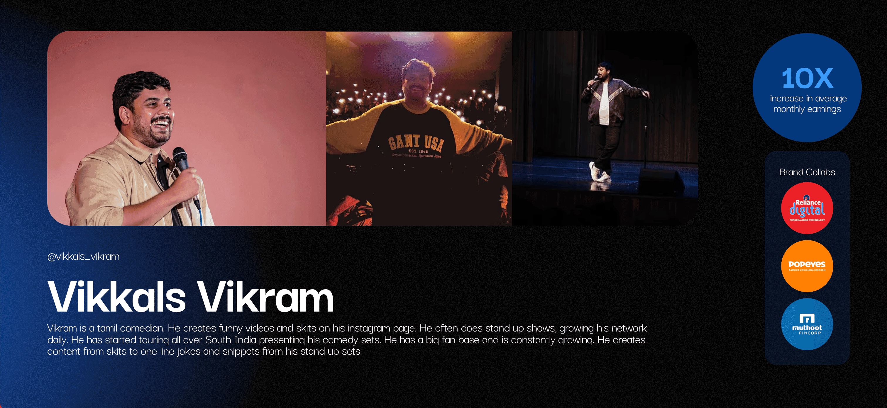 Interactive Roster: Creator cards with location, followers, and IG handles