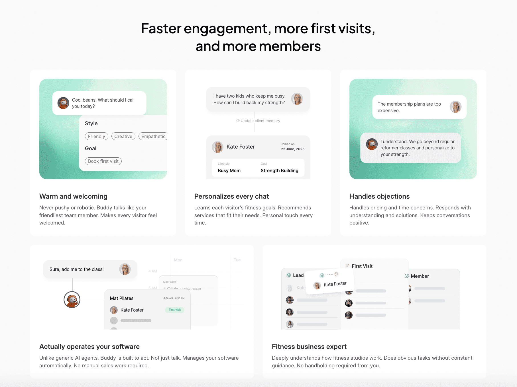 Buddy is an AI-powered sales manager designed for fitness studios. The product automates lead qualification, client follow-ups, bookings, and CRM updates — essentially acting as a studio’s most reliable front-desk employee.