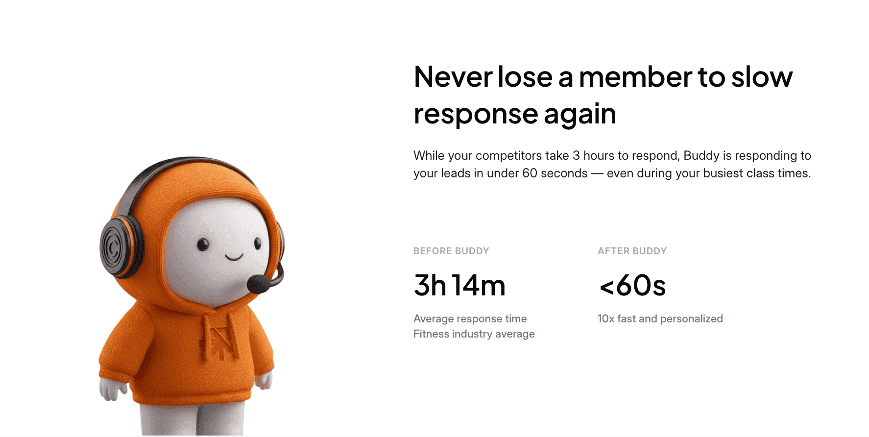 1. Explain Buddy instantly - The product solves a pain point most studios face — slow lead responses — but the value needed to be communicated within seconds.