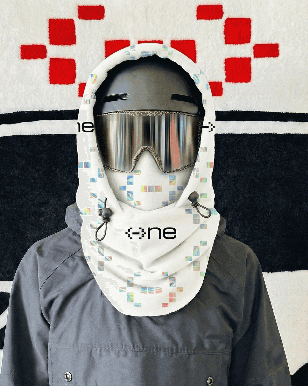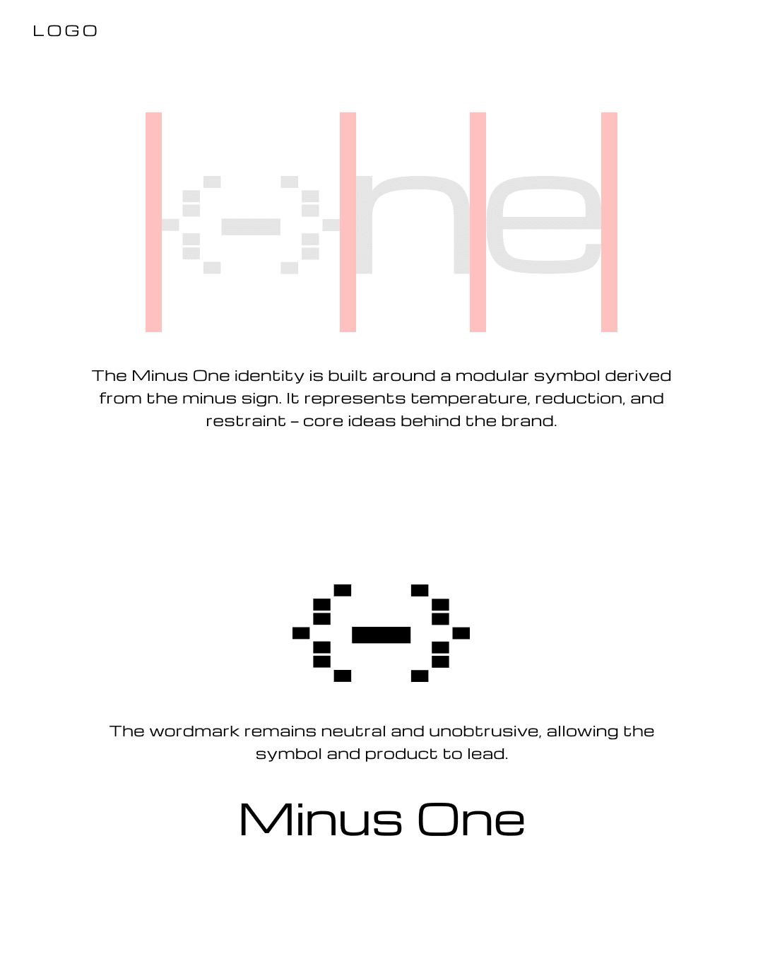 The minus symbol is constructed from a grid of modular units.